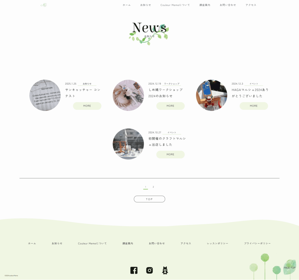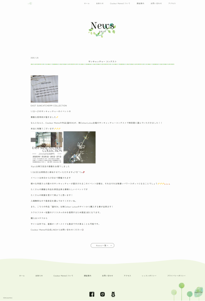 サイト上に、教室内容や作品情報を的確かつ、わかりやすく掲載し、ターゲットに対し魅力的に訴求する。また、イベント出店情報や、教室の開催情報を、適宜更新することでサイト訪問者の満足度と信頼性を向上させる。