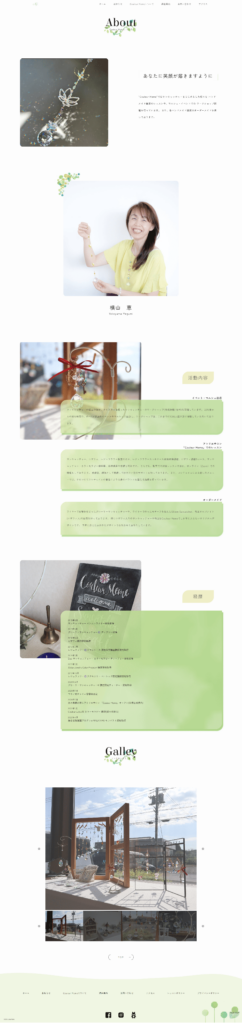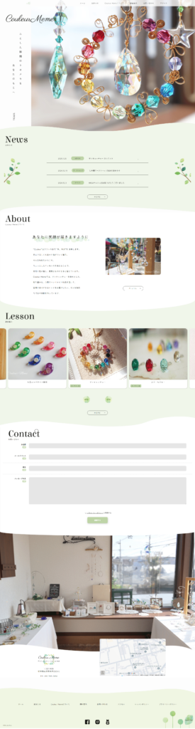 WordPressにより更新性のあるサイトを構築しました。また、作品やレッスンメニューをスライダーで表示することで、ユーザーの視点を惹きつけるとともに省スペースでの情報発信をねらいました。